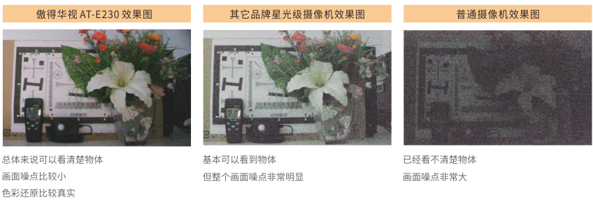 傲得華視AT-E230具有高靈敏感光功能,在低照度條件下,開啟可以增加感光靈敏度,提升夜視效果。