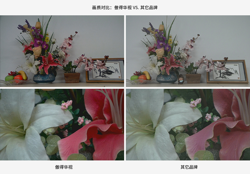 傲得華視色還原技術(shù)在減少對其它無關(guān)顏色影響的情況下對某特定顏色進行校正,并且能夠保持色差信號空間當中各軸邊界上顏色的連續(xù)性。因此既能進行高度自由的顏色校正又能提高顏色的再現(xiàn)性能。